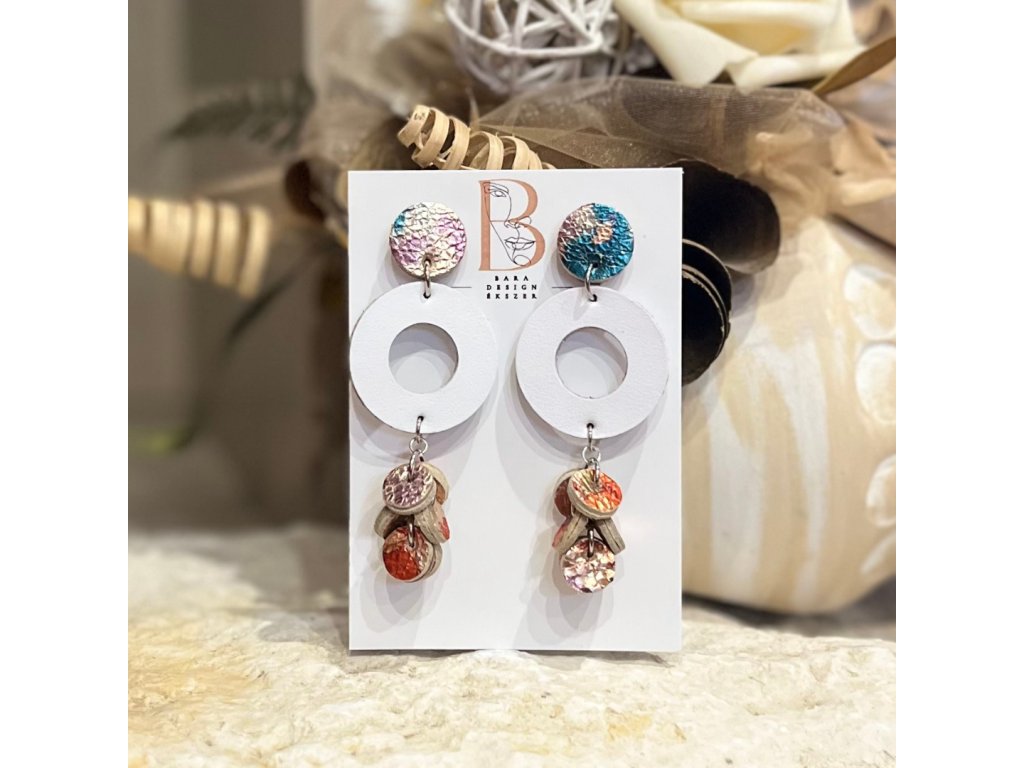 Elegáns és könnyű bőr fülbevaló, amely tökéletes kiegészítő a mindennapokra és különleges alkalmakra. Választható arany vagy ezüst szerelékkel, egyedi, kézzel készített dizájnnal. Stílusos, nőies és kényelmes viselet. Ideális ajándék születésnapra vagy névnapra!