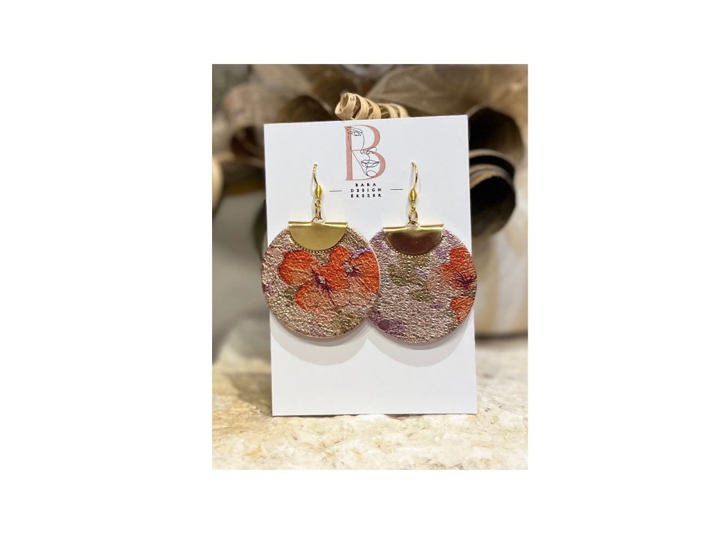 A fülbevalót különleges mintázatú, minőségi bőrből készítettem. A fülbevalót három méretben lehet választani. A legnagyobb hossza szerelékkel együtt 7 cm, a kör átmérője 5 cm. A közepes méretű hossza szerelékkel 6 cm, a kör átmérője 4 cm. A kicsi hossza szerelékkel együtt 5 cm, a kör átmérője 3 cm. A szerelék kérhető arany vagy ezüst színben. Nagyon könnyű viselet. Nagyszerű ajándék lehet születésnapra, névnapra.